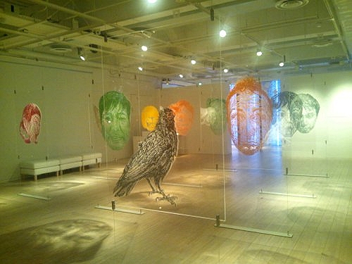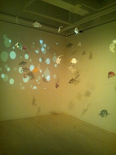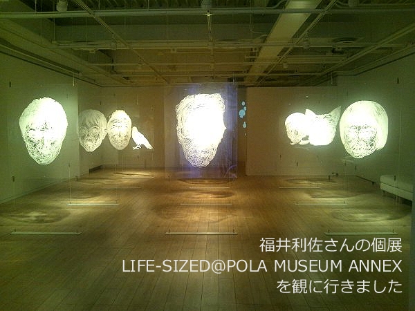 2013/09/04 Category : 日記 福井利佐さんの個展を観に行って参りました 今日は、銀座のポーラミュージアムアネックスにて開催中の、切り絵作家の福井利佐さんの個展「LIFE-SIZED@POLA MUSEUM ANNEX」を観に行きました! 以前から画集(2007年の「KIRIGA」、背表紙が取れるほど読みました。)を持っていたりと、長年気になっていたのですが今回個展が銀座で開催とのことで、やっと原画を拝見する機会が出来ました。 福井利佐さんは他の誰にも描き得ない、命のラインを切り絵で描かれている方です。 特に、今回こうしてメインになっているような老若男女の人物の表情の作品や、世界の動物の作品を主に発表されています。 何より、その命の瑞々しさ! 切り絵の切り口特有の力強さと、生命感溢れる作品を作られています。 そしてこれまで手掛けられている作品を見ると、福井さんの作られる作品は色付きの切り絵作品中心で、その鮮やかな色彩のコントラストもその魅力の重大な一要素でした。 なので今回の個展ではその色彩の要素、黒さえも排除して、「白」という、純粋に「ライン」のみの「絵」そのもの、生身の作品を展示されていたようです。 作品は想像していたものよりずっと大きかったです。間近で切り口を見ることが出来ます! やはり大きな作品の魅力はその切り口のダイナミックさを体で感じることのように思います。 上の写真でもおわかりになるかと思いますが、床に切り絵の影が落ちて幻想的な空間を創っています。 そしてよく見ると、一つ一つ、とても微妙ですが、白の中にもなんとなく色があるような・・・ 切り絵を裏側から見たところです。 白色の裏側はこんな鮮やかな色だったのですね。 なので、その色が本当に微妙にですが、光に透けて映っていたというわけです。 手前の鳥がものすごく格好良いですね。 左下に落ちている切り絵の影も、不思議に本物の写真のような存在感を放っています。 奥にはこんな切り絵のモビールがありました。ワークショップで皆さんで作られた作品とのことです。 やはり、切り絵のモビールは影が落ちて素敵ですね。 水玉の照明の中に影が落ちるようになっています。 出口の部分にもこんな装飾がありました! 魚の群れのシルエットが素敵ですね。 私の切り絵作品の作り方とは全く違う作り方でしたが、私もこんな躍動感と生命力に溢れた作品を作っていきたいと思いました。 会場は入場無料で、写真撮影もフラッシュなしならOKとのことです。 銀座駅からもすぐですし、なかなか福井利佐さんの作品を見られる機会はないので、是非いかがでしょうか。 福井利佐「LIFE-SIZED」 POLA MUSEUM ANNEX 2013年8月9日(金)~9月8日(日) 11:00~20:00 入場無料/会期中無休